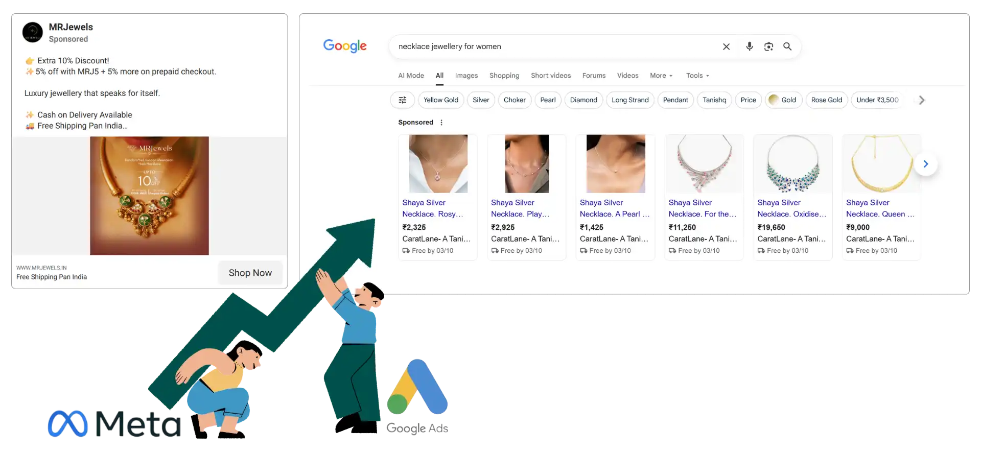Of course both while Meta ads can help your business grow, relying on a single channel can limit your reach. Google Ads provides a powerful platform to target high-intent searchers and acquire new customers quickly. Whether you’re a service-based business generating leads or a D2C e-commerce brand driving sales, Google Ads acts as an additional channel to complement your existing campaigns. If Meta ads are working for you, adding Google Ads can significantly increase your leads and sales, giving your business a stronger growth trajectory.